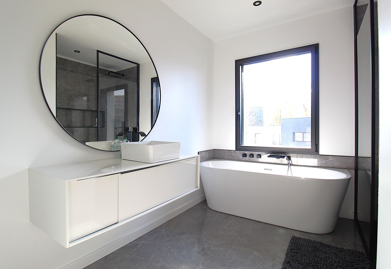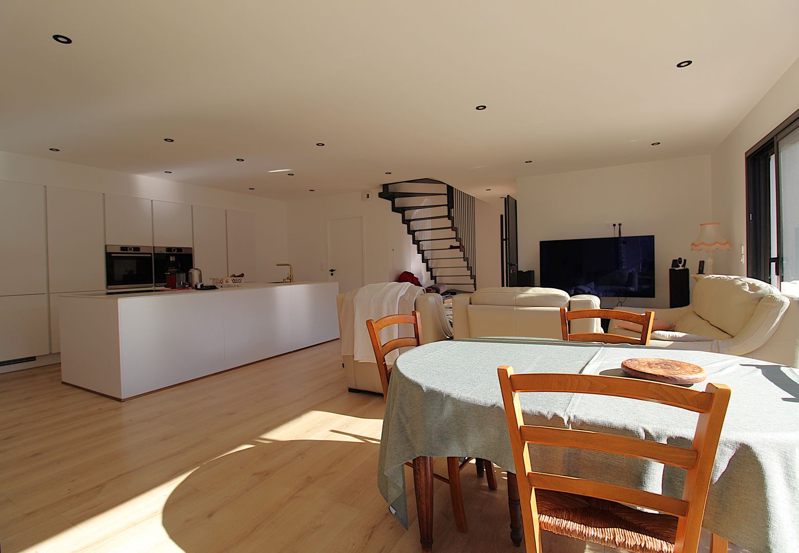 LORIENT. Idéalement située en impasse, commerces, écoles et gare à pied, cette maison de 2021 vous propose une vie de plain pied sur 130 m² habitable. Au RDC un hall d'entrée vous ouvre sur une pièce à vivre lumineuse exposée sud de 44 m² avec cuisine aménagée équipée - séjour - salon, une suite parentale avec chambre, salle d'eau privative et dressing, WC, cellier - buanderie avec accès garage de 22 m²; A l'étage un dégagement distribue 3 chambres dont une de 16 m², salle de bains avec douche et baignoire et WC. Terrasse et jardin exposés sud sur 230 m² de parcelle.